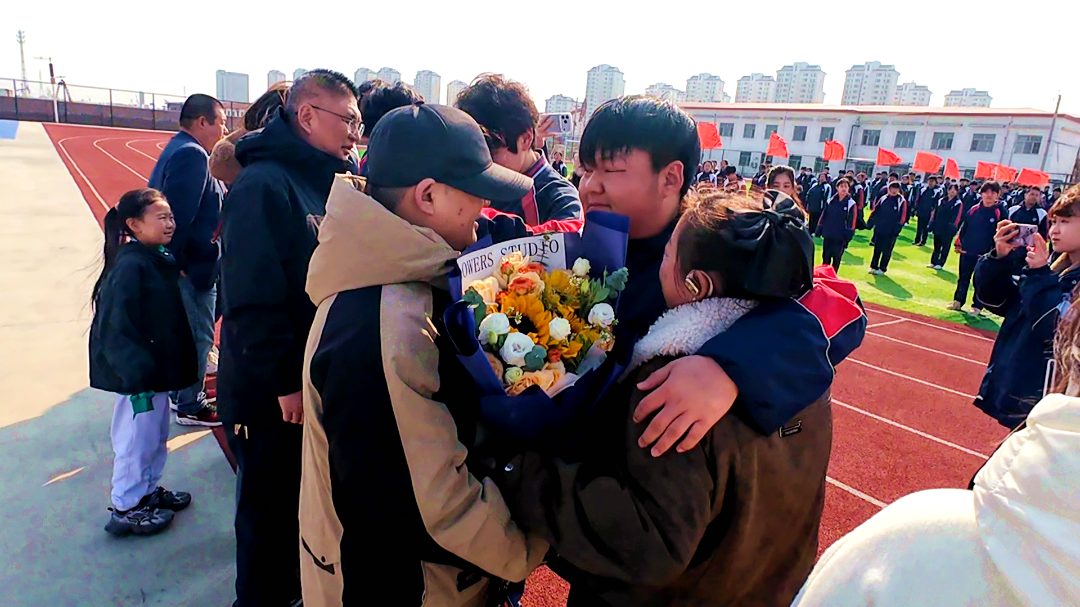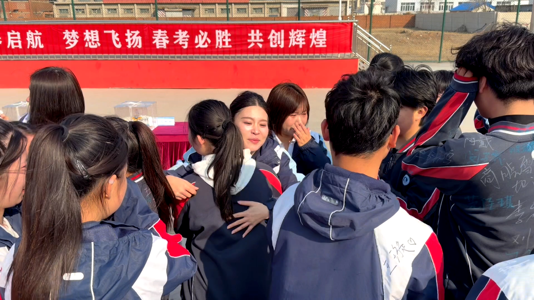 一支粉笔,两袖微尘,三尺讲台,四季耕耘。在悠扬的音乐声中,毕业班全体教师登上舞台,学生代表手捧鲜花,献上最诚挚的敬意。师生深情相拥,泪水与笑容交织,定格成最美丽的画面。