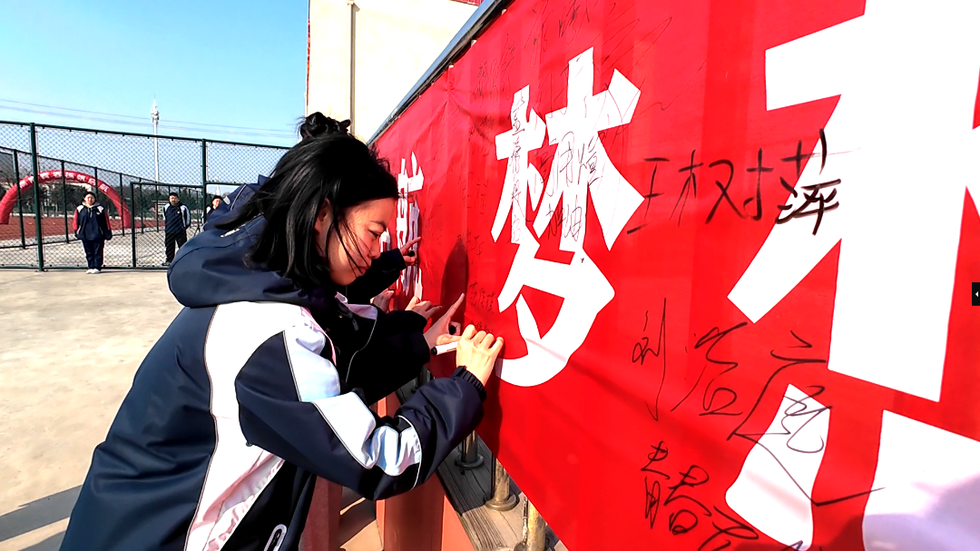 誓言刻于心,更落于行。主题横幅徐徐展开,同学们依次上前,郑重签下自己的名字。一笔一画,是对青春的承诺;一字一名,是成长的见证。随后,领导、老师们也纷纷在横幅上写下祝福与期许,为学子们的理想添上一份厚重的祝愿。